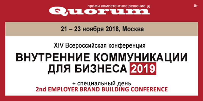 21-23 ноября 2018 в Москве состоится XIV Всероссийская конференция ВНУТРЕННИЕ КОММУНИКАЦИИ ДЛЯ БИЗНЕСА 2019 + специальный день 2nd EMPLOYER BRAND BUILDING CONFERENCE