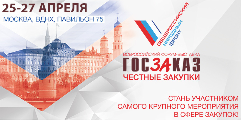 С 25 по 27 апреля в Москве, на ВДНХ (75-й павильон) при поддержке Общероссийского народного фронта будет проходить XIV Всероссийский Форум-выставка «ГОСЗАКАЗ-ЗА честные закупки».
