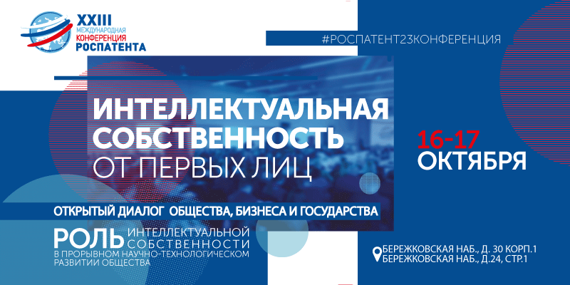 XXIII Международная конференция Роспатента — всё об интеллектуальной собственности, её определяющей роли в развитии инновационной экономики от тех, кто формирует повестку и пути развития ИС. Конференция пройдет 16–17 октября 2019 года в Роспатенте.