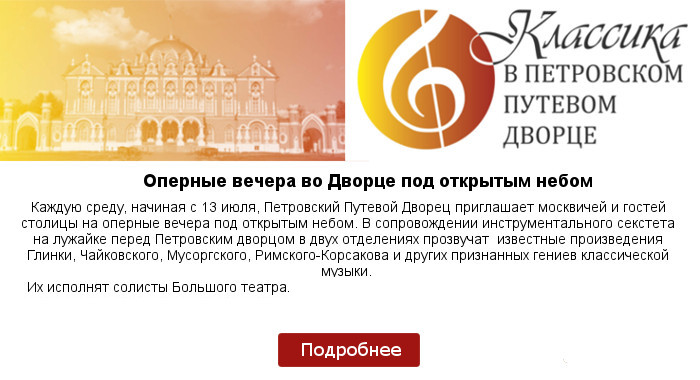 La CCI France Russie vous présente un événement partenaire : les soirées d’opéra à ciel ouvert au Palais Petrovski.