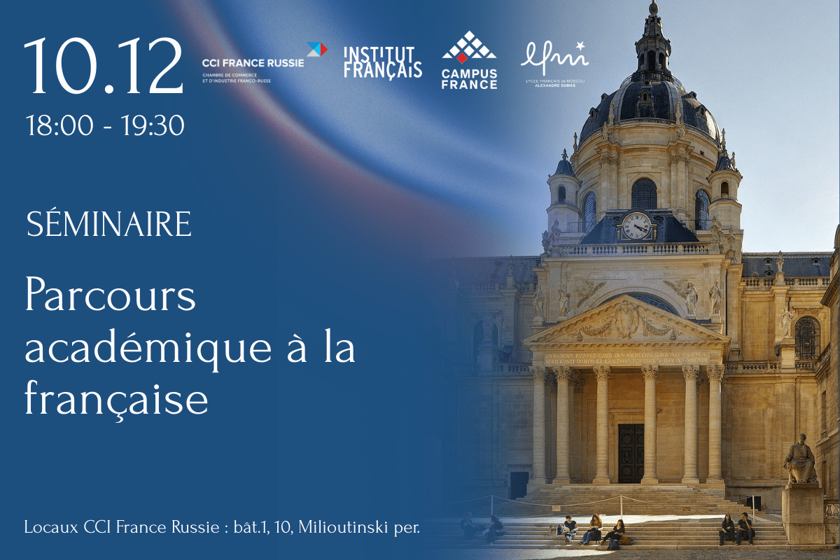 L'éducation française est l'une des plus attractives au monde, notamment grâce à ses traditions académiques, ses universités prestigieuses et la richesse culturelle du pays. En effet, les diplômes français étant largement reconnus à l’international, ceux-ci offrent de vastes perspectives de développement personnel et professionnel. Une rencontre à la CCI France Russie sera organisée afin de présenter les opportunités d’aujourd’hui en matière d’éducation à la française. D’abord, Le Proviseur du Lycée Français de Moscou Alexandre Dumas présentera l’école et l’enseignement proposé en conformité avec les standards de l’État français. Le lycée se trouve être une opportunité formidable pour les écoliers de s’immerger dans une expérience interculturelle unique dès le plus jeune âge. Dans un deuxième temps, le coordinateur Campus France Russie, interviendra sur le fonctionnement de l'agence qui a permis à près de 500 000 étudiants étrangers l'année dernière de choisir un établissement d'enseignement supérieur ou des diplômes professionnels (formations avancées, MBA etc.) en France.