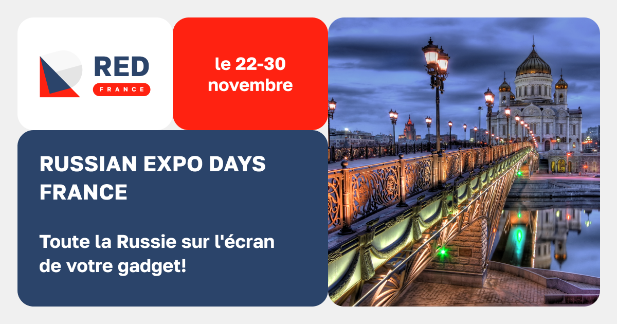 Nous sommes heureux d’annoncer l’exposition en ligne Russian Expo Days France 2021, qui aura lieu du 22 au 30 novembre