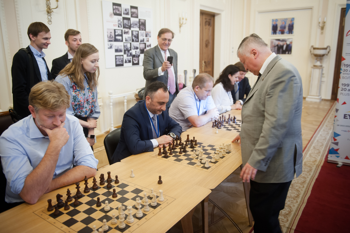 Les derniers joueurs en lice face à Anatoly Karpov étaient Dmitri Babourine et Dmitri Kamenski, représentants de la société Baring Vostok Capital Partners : « la partie était étonnamment longue. Nous pensions perdre en 15 coups mais il s’est avéré que nous nous sommes battus très longtemps ».
