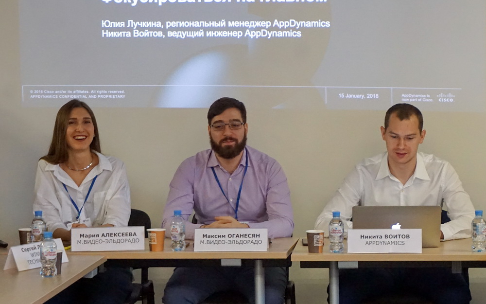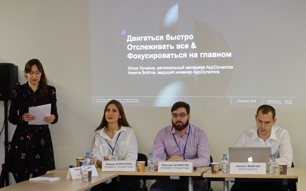 Les représentants de M. Video-Eldorado, Maria Alekseeva, chef de projets IT, et Maxim Oganesyan, responsable du support des applications de commerce électronique, ont décrit, sur la base de leur propre expérience, l’utilisation de la plateforme AppDynamics. Les deux experts ont souligné l’importance d’établir un lien entre l’entreprise et la sphère IT afin d’augmenter l’efficacité de l’utilisation des applications sur Internet. «Dialoguer avec une entreprise dans la même langue signifie que l’entreprise doit utiliser la même application», a souligné Maria Alekseeva.