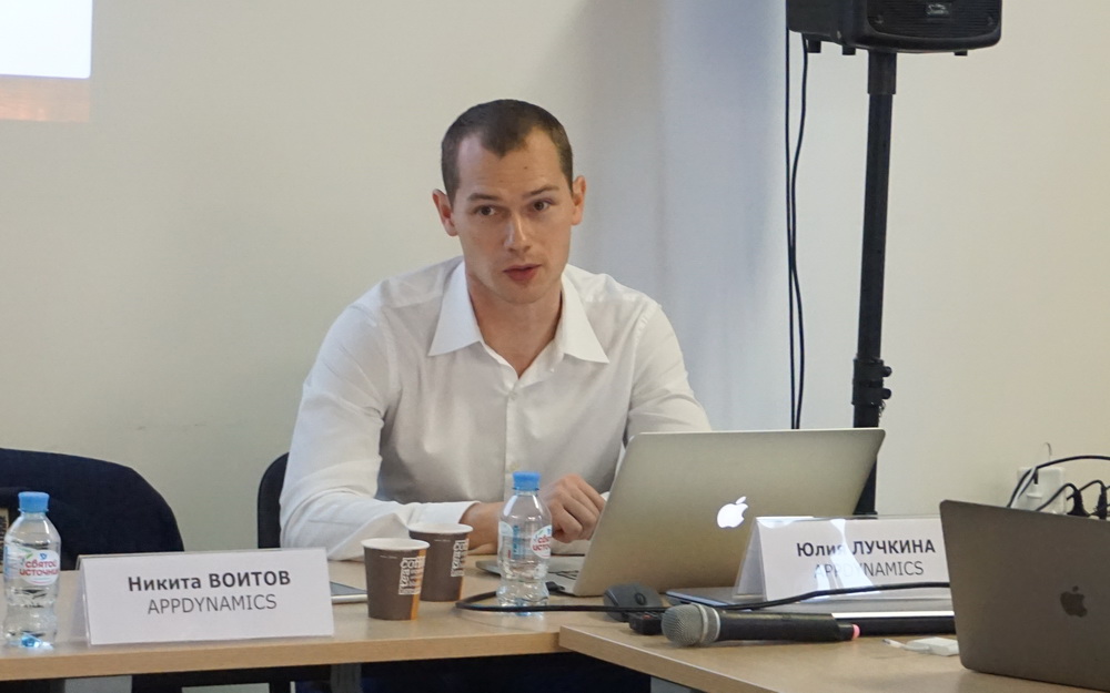 Nikita Voïtov, ingénieur, a pris une application de commerce électronique comme exemple pour présenter aux participants l’architecture d’AppDynamics et le tableau de bord qui garantit la transparence des opérations. AppDynamics, via des agents installés sur les serveurs de l‘application du client, trace les transactions commerciales, les experts IT reçoivent leur carte dynamique complète en temps réel, où ils détectent les transactions erronées qui doivent être supprimées, avec des informations détaillées sur chacun de ses composants. L’expert a souligné une fois de plus que la principale différence entre AppDynamics et les plateformes similaires est la possibilité d‘analyse.