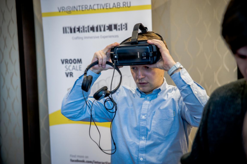 Maksim KOZLOV de la société InteractiveLab Casey a montré la possibilité d’utiliser la réalité virtuelle dans les affaires et le marketing, en expliquant qu’une personne qui porte des lunettes de réalité virtuelle, sera 5 minutes plus tard, entièrement transportée et consacrée au monde virtuel qui lui est présenté.