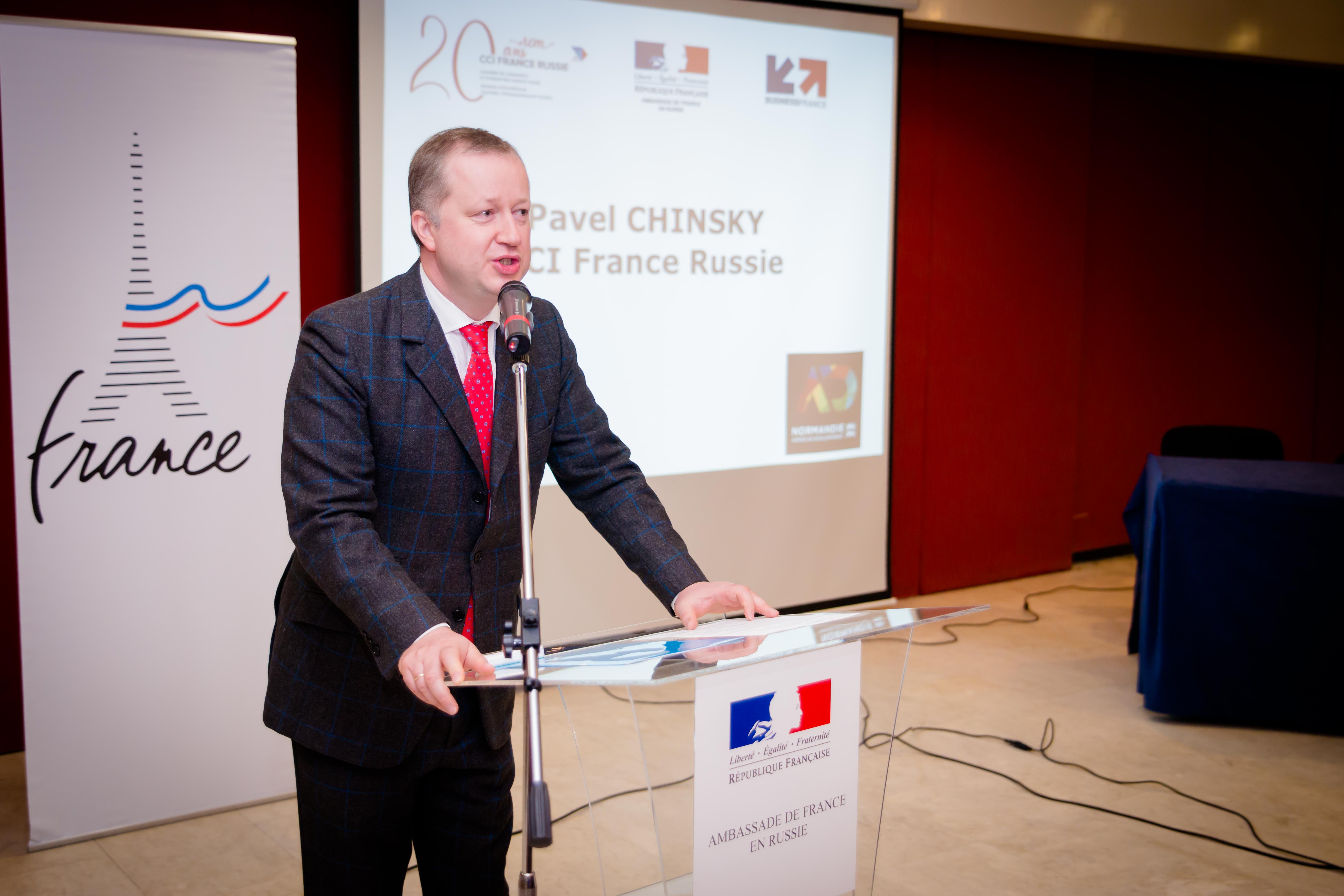 En ouverture de conférence, Pavel CHINSKY, directeur général de la CCI France Russie, a rappelé aux participants les liens historiques existants entre la Normandie et la Russie en citant notamment les exemples du Régiment Normandie – Niemen, du mémorial de Caen ou encore du jumelage entre les villes du Havre et de Saint-Pétersbourg.
