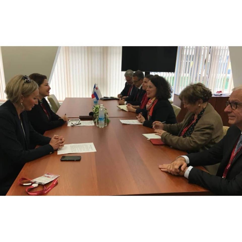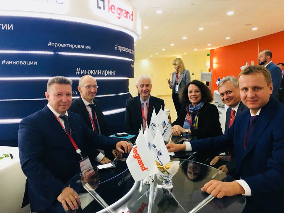 Dans le cadre de l’exposition du Forum, madame l’ambassadeur de France en Russie Sylvie Bermann et le président Chambre de commerce et d’industrie franco-russe Emmanuel Quidet ont visité les stands des entreprises françaises Insystems et Legrand.