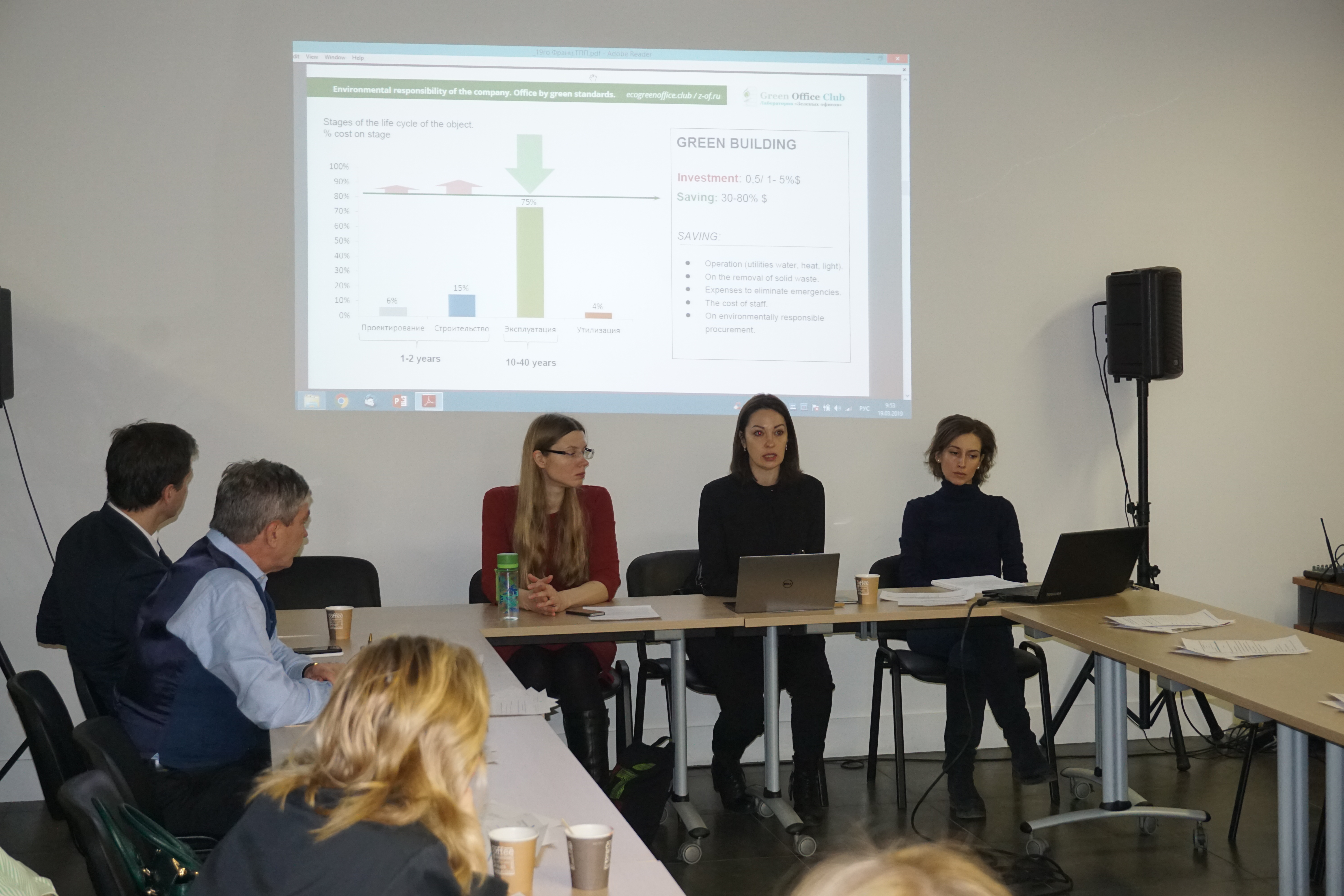 Les participants à la réunion ont discuté des standards écologiques dans le domaine de la construction et de l’écologisation des processus internes au bureau en tant que composante de la responsabilité écologique des entreprises.