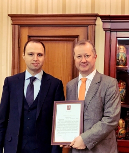 Le 3 mars, Evgueni Dridze, directeur adjoint du Département pour le commerce extérieur et les relations internationales de la ville de Moscou a remis une lettre de vœux à Pavel Chinsky, directeur général de la Chambre de commerce et d’industrie franco-russe au nom de Sergueï Sobianine, maire de Moscou.Aux membres et employés de la Chambre de commerce et d’industrie franco-russe