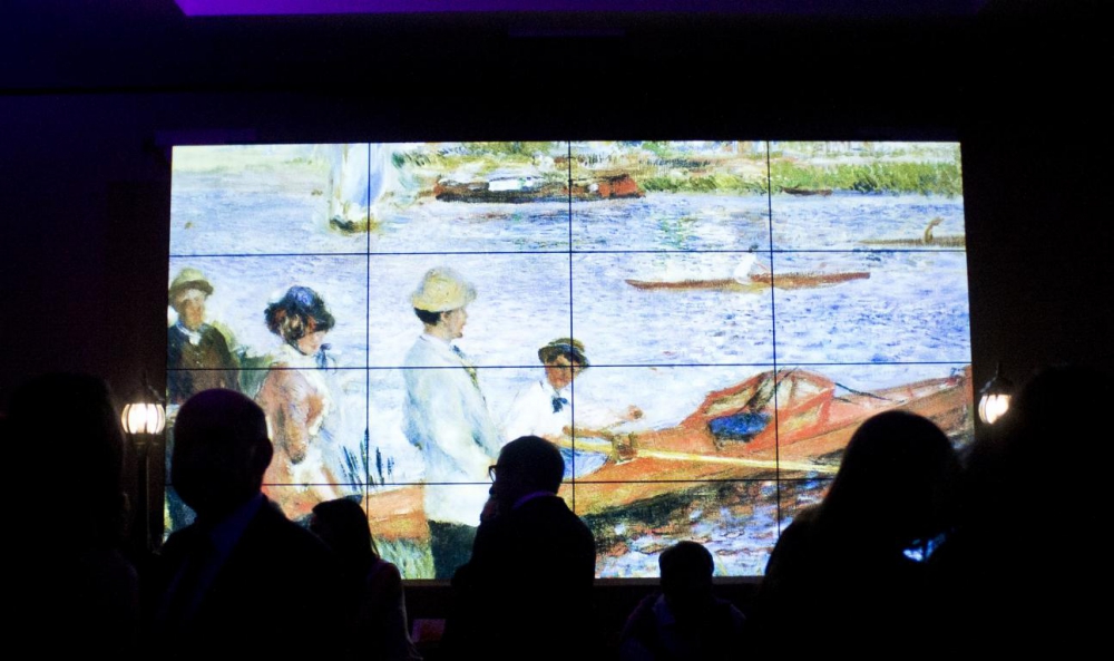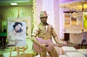 Accueillis dès leur entrée au son des plus belles chansons françaises par des mimes tout d’or vêtus, les parisiens d’un soir ont pu se promener parmi les nombreux tableaux exposés dans la Galerie d’art tout en profitant des délices offerts par les nombreux buffets.