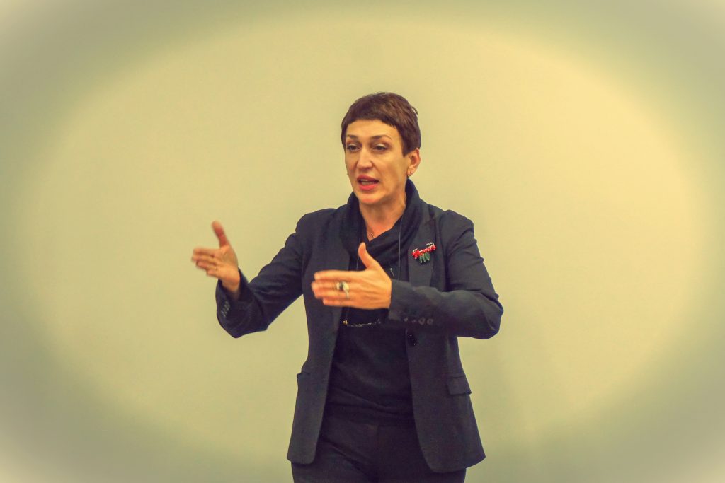 Elena Laskavaya a expliqué comment surmonter tous ces réflexes physiologiques humains en travaillant sa respiration, en « larguant » toutes les crispations du corps et de la mâchoire. Une gestuelle libre et fluide, des jambes bien ancrées, une respiration correcte, une voix grave et profonde (qui peut être développée par des exercices), une élocution mélodieuse – voilà la liste des qualités qui, selon l’intervenante, distinguent les bons orateurs.