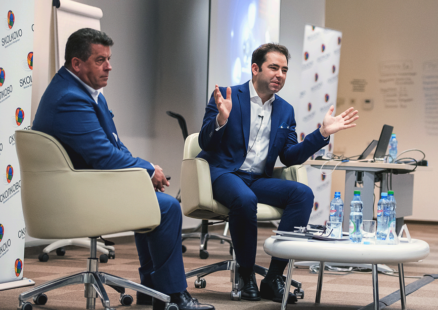 22 июля в Московской школе управления СКОЛКОВО Президент Центра научно-технологической кооперации Nauka Innov при Франко-российской торгово-промышленной палате (CCI France Russie) Адриен Даньер и вице-президент по управлению глобальными продажами в аэрокосмической отрасли Dassault Systemes Патрик Фардо выступили с совместным докладом по вопросам глобальной кооперации и развития международного сотрудничества в рамках Стратегической сессии Национальных чемпионов.