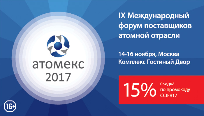 Генеральный спонсор IX Международного форума поставщиков атомной отрасли «АТОМЕКС 2017» – ПАО «Совкомбанк». Оператор форума – ООО «Атомэкспо».