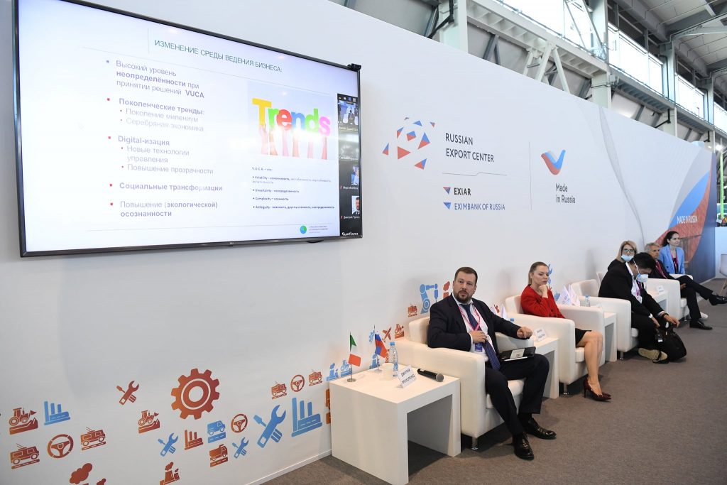 Мария Ладыгина, руководитель направления Франко-российской ТПП, выступила на круглом столе «Как устойчивая повестка меняет производство и потребление» в рамках международной деловой миссии АО «Российский экспортный центр» на ИННОПРОМ.
