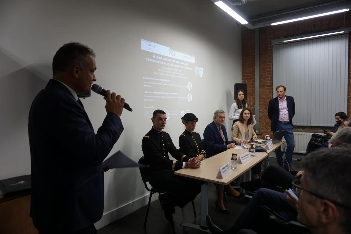 27 сентября в офисе Франко-российской торгово-промышленной палаты (CCI France Russie) прошла лекция, посвященная Cadre Noir - команде инструкторов во французской военной академии верховой езды École Nationale d'Équitation в Сомюре на западе Франции, основанной в 1828 году.