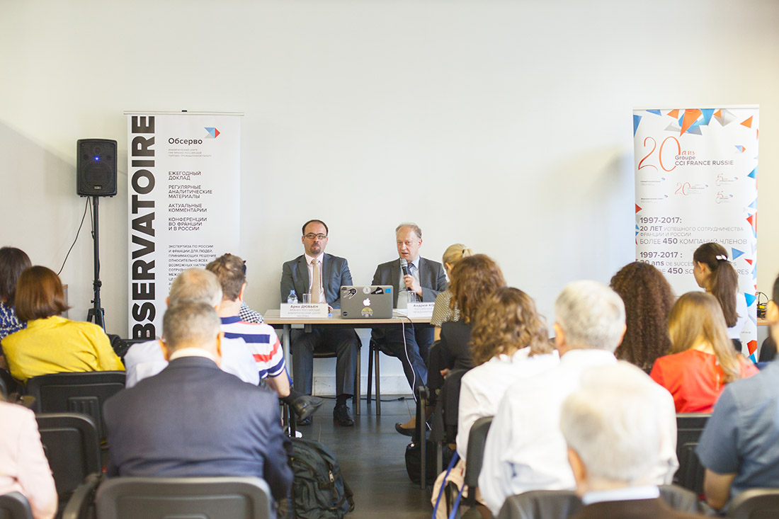 Темой встречи стали новые реалии российско-французских отношений после президентских выборов во Франции. Вступительное слово произнес Арно Дюбьен, директор Франко-российского аналитического центра Обсерво.