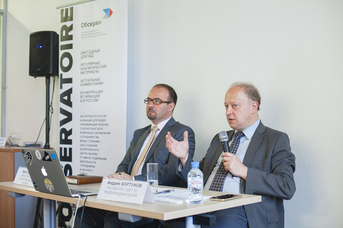 Прежде всего Андрей Кортунов отметил, что после избрания нового президента современная Франция сильно изменилась: «Эммануэль Макрон – это вызов. Он один из первых лидеров, заставивших Путина ждать». Ожидать прорыва в российско-французских отношениях сложно. Россия, очевидно, не будет первостепенным приоритетом в направлении французской политики, сфокусированной на укреплении европейского единства. Однако в связи с победой Эммануэля Макрона открываются дополнительные возможности по взаимодействию России и Франции по трем региональным направлениям: сирийскому, ливийскому и, в меньшей степени, украинскому.