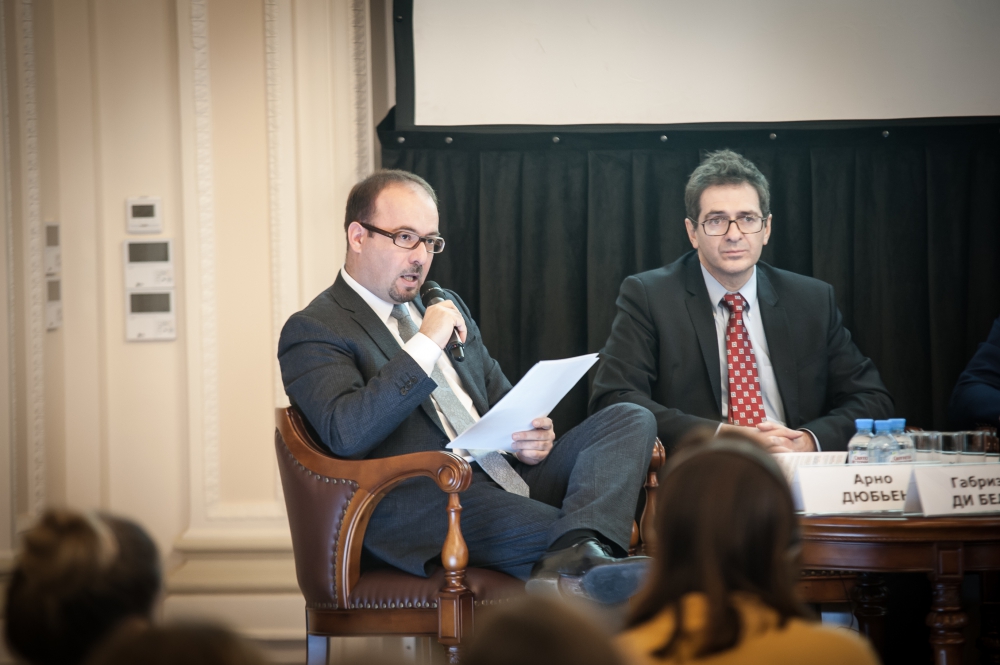 14 декабря пятая конференция «Экономическая ситуация в России: ожидания, прогнозы, перспективы» собрала более 100 участников. Во вступительной речи генеральный директор Франко-российской торгово-промышленной палаты Павел ШИНСКИЙ напомнил о том, что уже третий год подряд Франция сохраняет за собой первое место по объему ежегодных инвестиций в России, а также в качестве примера постоянства привел открытие 100-го гипермаркета Ашана в Москве, которое состоялось накануне. Соорганизатором конференции выступил Франко-российский аналитический центр Обсерво, директор которого, Арно ДЮБЬЕН, модерировал первую сессию.