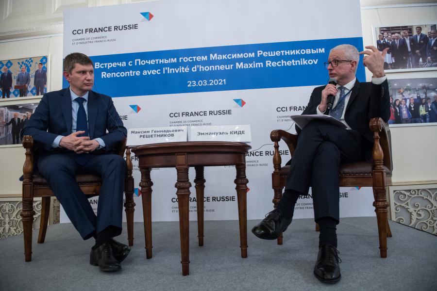 В свою очередь президент Франко-российской торгово-промышленной палаты Эммануэль Киде сообщил, что Минэкономразвития РФ в период пандемии оказывало поддержку бизнесу, организовывая въезд в Россию высококвалифицированных специалистов из Франции, что было критично для работы локализованных в России производств французских компаний-инвесторов. «Франция является вторым инвестором в Россию, и ни одна компания не покинула страну по политическим причинам», — отметил он.