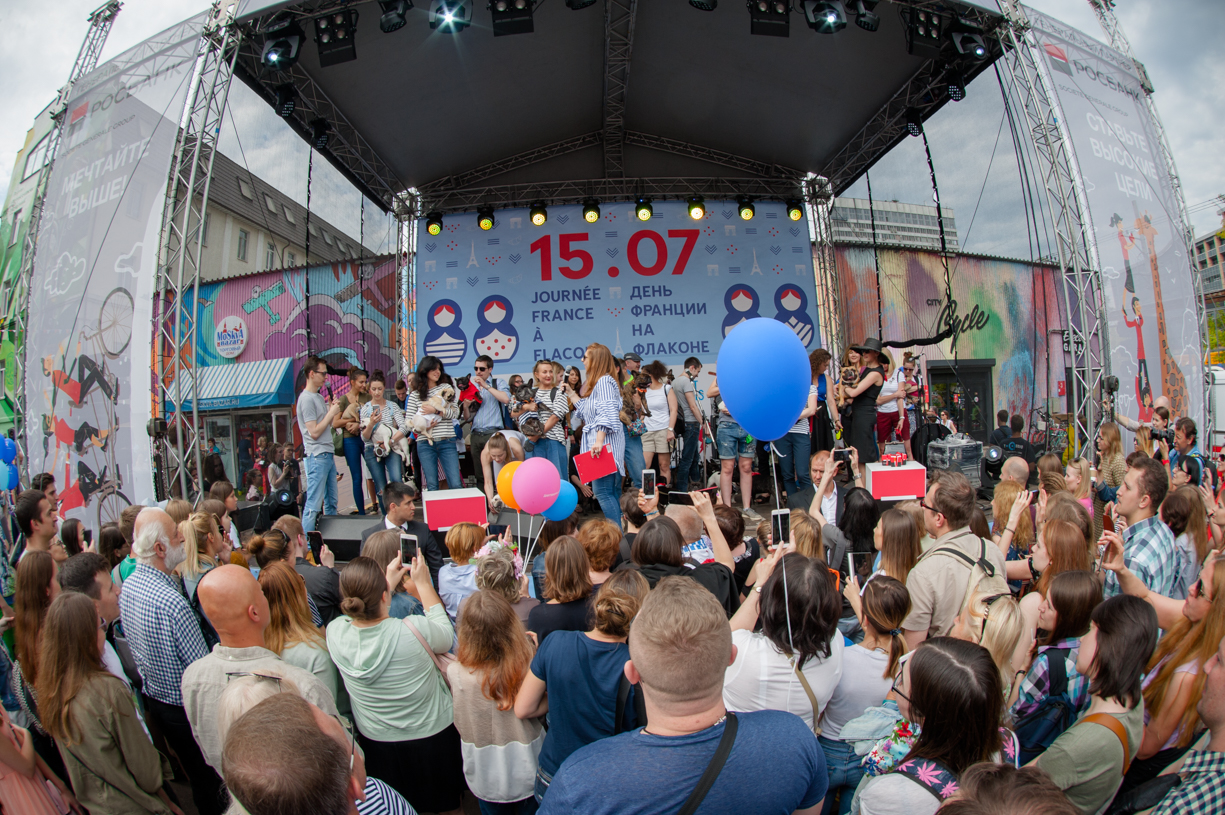 Весь день на сцене выступали артисты: группа Belleville, Ирина Марго, Наталья Яшина, приглашенная солистка Большого театра Дарья Давыдова и многие другие. Одним из главных представлений на сцене стал традиционный парад бульдогов, в котором приняло участие более 50 домашних питомцев. Как отметило Посольство Франции в России, «”День Франции” на Флаконе за три года проведения стал настоящим французским праздником в центре Москвы».