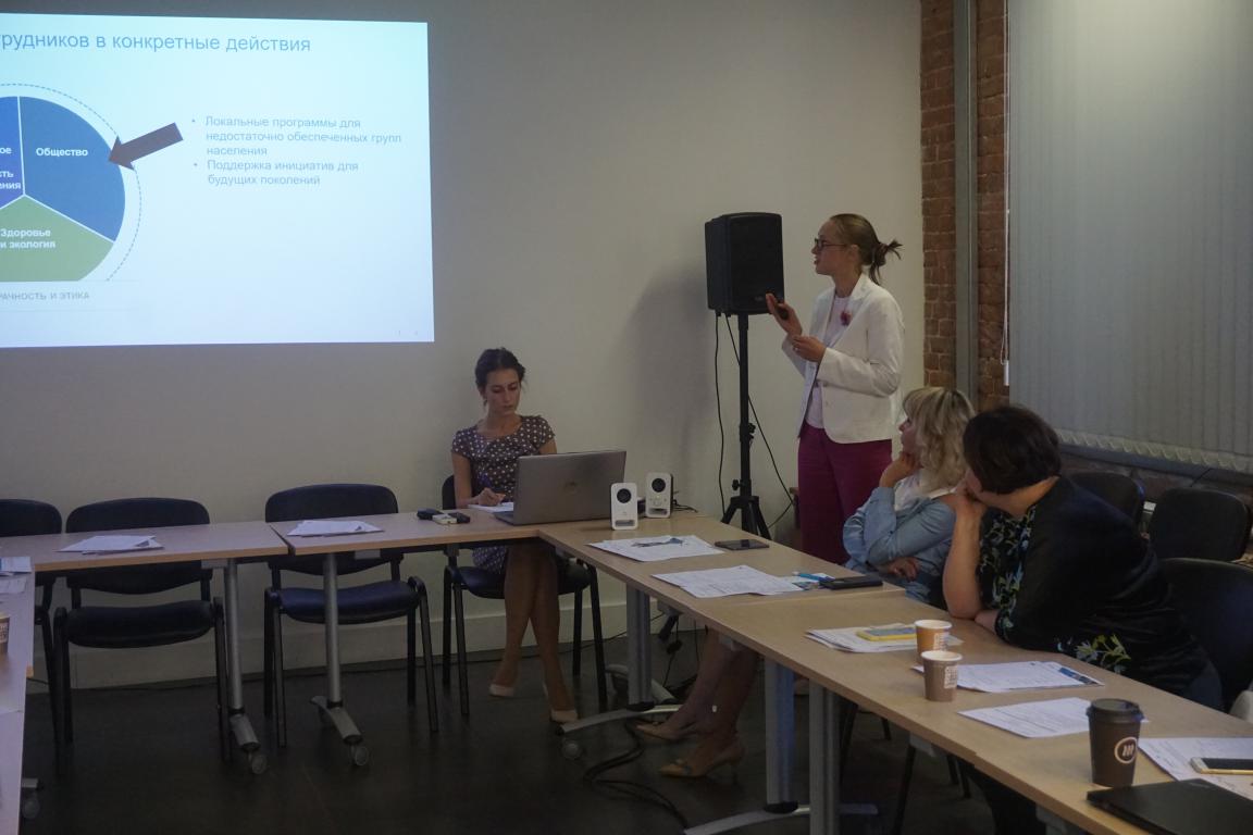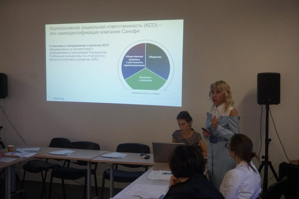 Татьяна Смирнова, Сопредседатель комитета по здравоохранению, Руководитель по взаимодействию с органами государственной власти и общественными организациями, Sanofi, поделилась опытом ее компании: «Корпоративная и социальная ответственность – это самоидентификация компании Sanofi. Чем больше ты занимаешься производством лекарственных средств, облегчающих жизнь, тем больше понимаешь, что этого недостаточно. И если мы можем направить наши усилия на иные системные проблемы, нужно обязательно это сделать. Неправильно стоять в стороне». Татьяна Неговская, Менеджер по корпоративным программам и работе с общественными организациями, Sanofi, рассказала о «Сезоне солидарности» – международной социальной корпоративной инициативе Sanofi – об онлайн чудо-дереве, о благотворительной ярмарке поделок, созданных детьми-сиротами, а также о совместных проектах с благотворительным фондом «Арифметика добра».