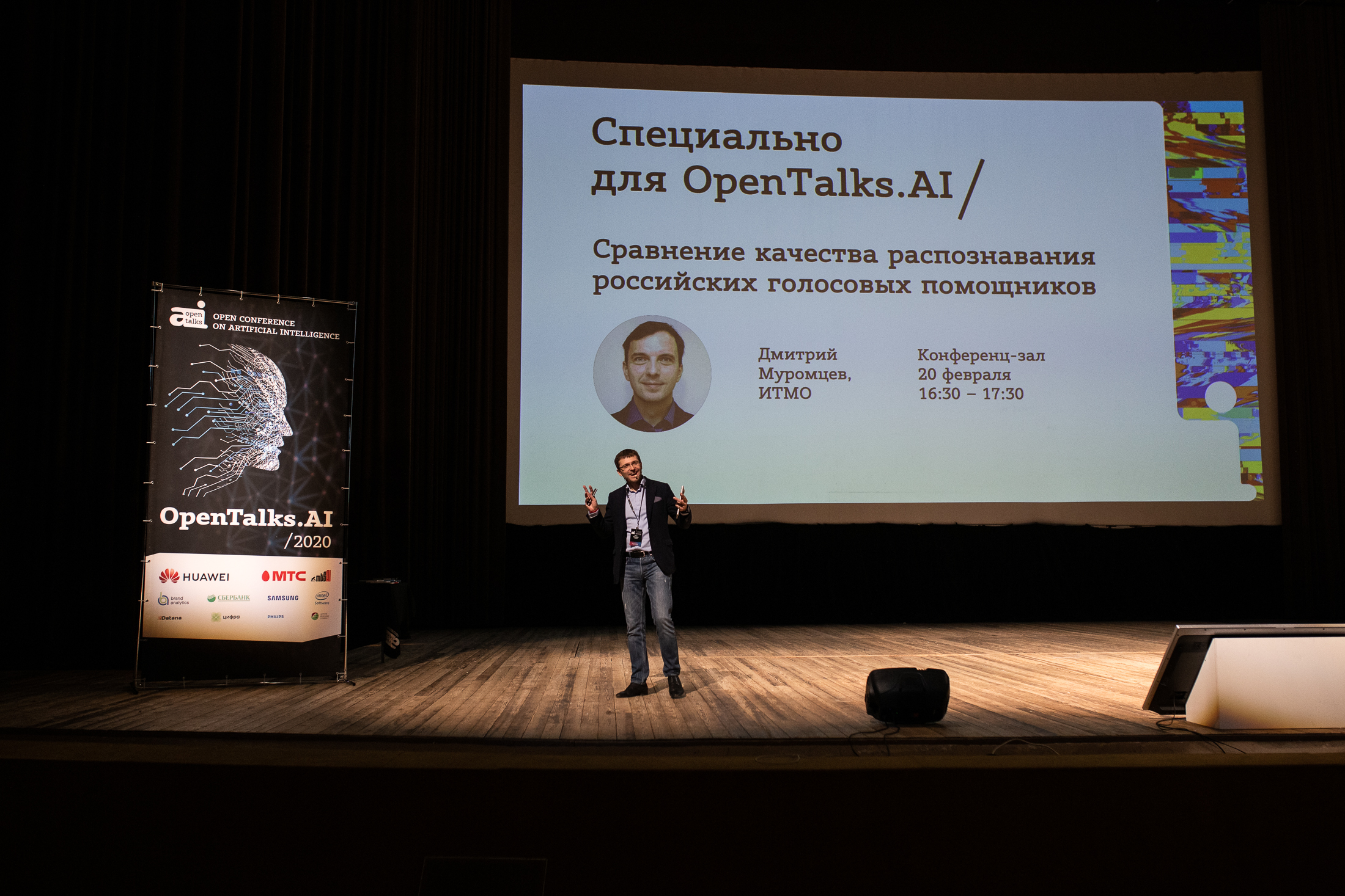 Первый в России независимый обзор качества распознавания голоса от российских компаний Яндекс, Тинькофф, ЦРТ в сравнении с Google представил на конференции Дмитрий Муромцев (ИТМО) при поддержке МТС. Вывод - несмотря на значительный прогресс в этой области, еще есть много аспектов, по которым можно улучшить работу ассистентов. При этом российские компании успешно конкурируют с зарубежными сервисами, обеспечивая хорошее качество распознавания русского языка.